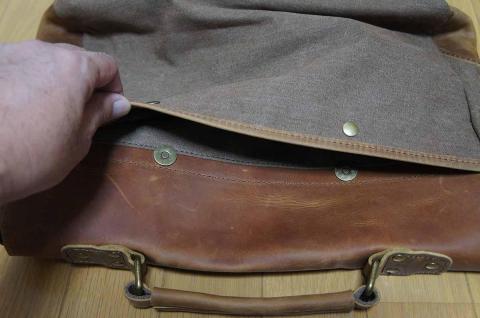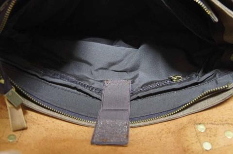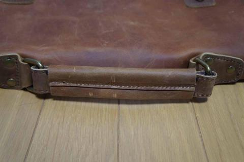 バッグ本体と取っ手の接合部には、しっかりとした芯が入っているので、重いものを入れても、型崩れしません。また、革の素材が良いのでしょう、取っ手が非常に手に馴染みます。