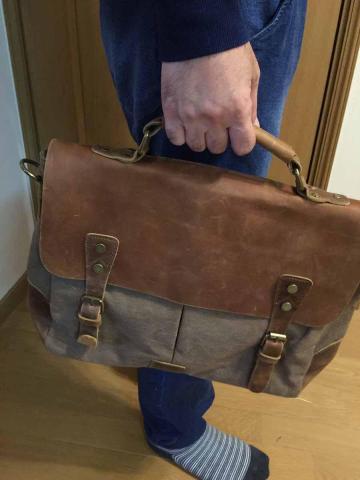 キャンバス素材のバッグは、とかくカジュアルになってしまいますが、このバッグだと、型がしっかりしているので、ビジネス用途でも持てます。15インチクラスなら、クッション材は入ってませんが、サイズ的には十分収納可能です。