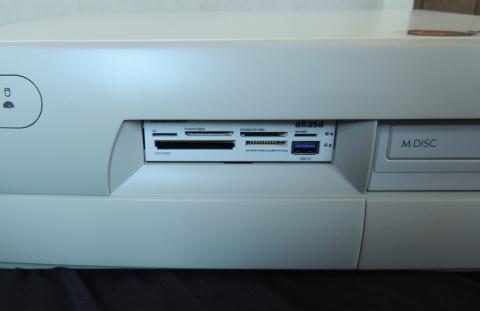 上段は正位置でメディアの表が上になるが、下段は裏返しにコネクタが配されているため、裏返しにしないと挿せない。