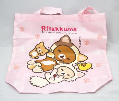本品は各店舗先着 50名が交換できる「リラックマおでかけトート」ですが、当初は通常交換品の「リラックマガラスボウル」だけにしようと言っていたのですが、「もっと♪のんびりネコテーマ」柄を気に入っている奥さんがやっぱり欲しいと急きょこちらに交換してしまいました(^^;