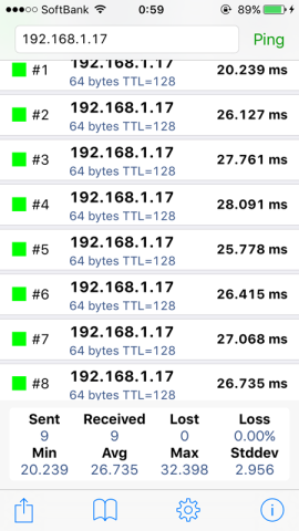 pingコマンドのオプションとか必要ないので一番シンプルなアプリを使いました。