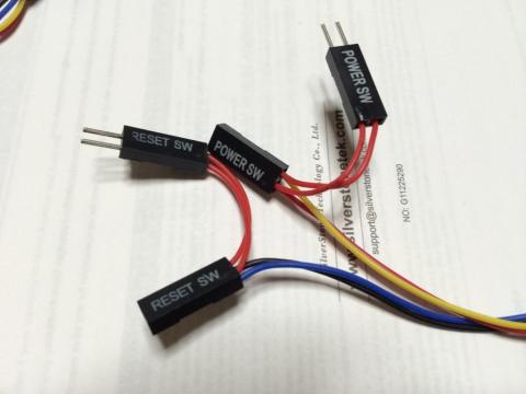 POWERとRESETの二つのケーブルでメスコネクタをマザーボードに