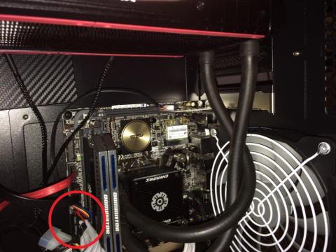 ①,Y字ケーブルをマザーボードとケースのケーブルにつける*赤丸部分