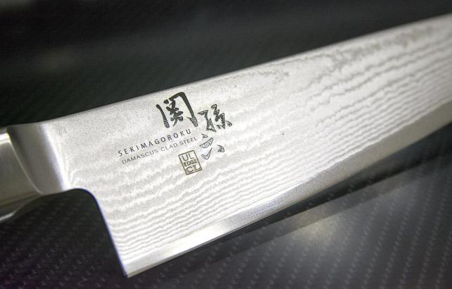 こちらの関孫六はハイカーボンステンレスのV金10号を芯材として、32層構造のステンレス積層鍛造で、ステンレスで寂びにくく、刃の部分はV金10号のハイカーボン素材で粘りのある切れ味といいとこ取りの構造となっています。