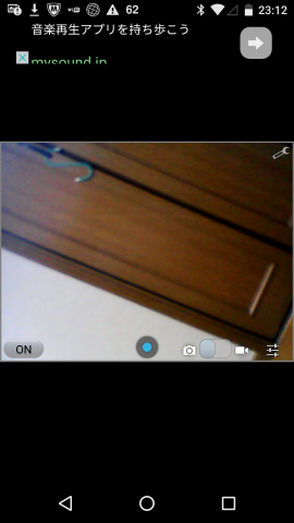 Android用アプリでは、静止画、動画の撮影が可能です。カメラの手元スイッチでも撮影できますが、アプリ側でも撮影開始/終了が行えます。