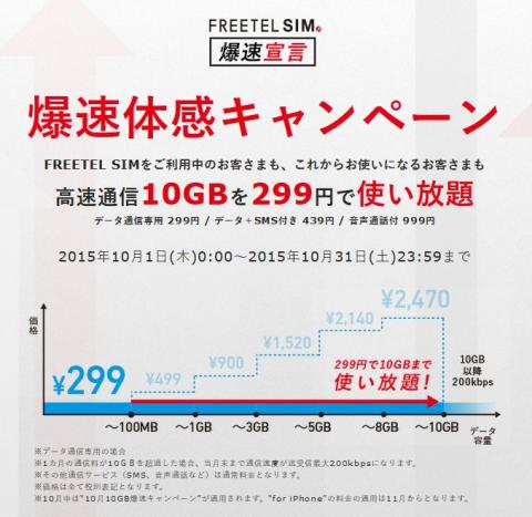 何故ここにしたかというと、2015年10月の間は10Gまで税抜き299円で使いたい放題でしたので・・・