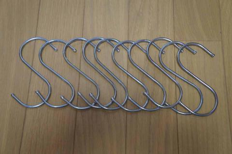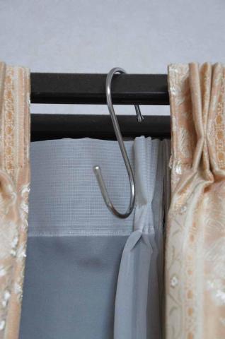 このS字フックには、重いものも掛けられますが、カーテンレールに使用する場合は、重さに気を付けてください。重いものを長期間掛けると、カーテンレールが垂れてきます。ご注意ください。