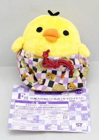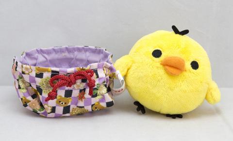 2015年10月3日から順次開催されている「リラックマくじ ~和モダン びより~」の F賞「巾着入りぬいぐるみ(キイロイトリ)」になります。
