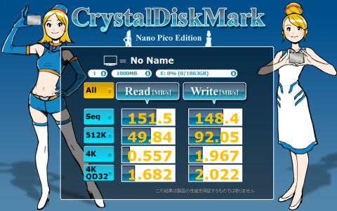 CrystalDiskMarkの結果です.