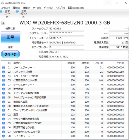 CrystalDiskInfoの結果です.