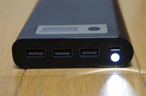 入力1ポート、出力3ポートあります。電源ボタンを2度押しすることで、LEDライトにもなります。