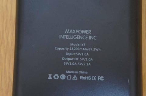 Mopoのモバイルバッテリー。容量は18200mAh。
