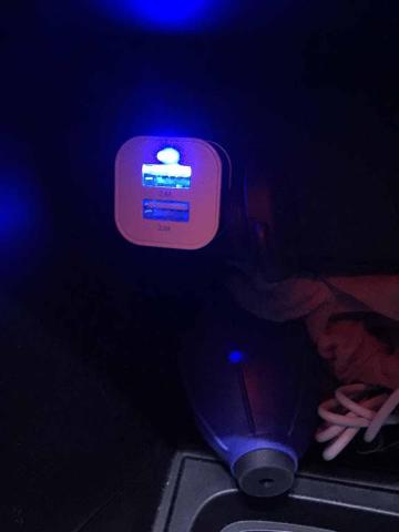 通電時は、青色のLEDが点灯します。未使用時は、できるだけ抜いておくか、少し手前に抜いて、通電しないようにした方がいいそうです。以前ロードサービスの方に聞きましたが、未使用時に通電させておくだけでも、バッテリーに負担があるそうです。特にバッテリーが弱ってる方は、気を付けてください。