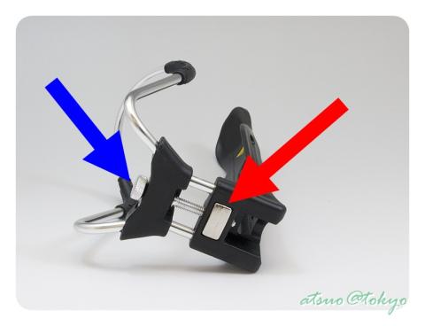 前方にあるネジを回す事で少しずつ開閉し、真ん中にあるボタンを押している事でネジがフリーになり一気に前後に動かせます。