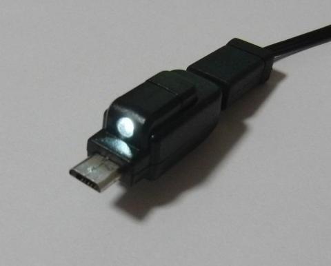 白色LEDライト付のmicroUSB中継コネクターに