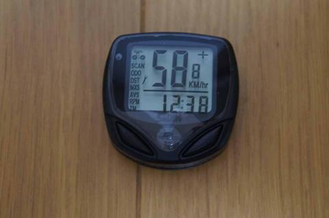 走行距離、積算距離、走行速度、最高速度、平均速度、走行時間、時計を表示してくれます。