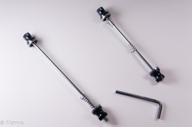 このスキュワーはクイックリリースと載せ替えて、付属の特殊アーレンキーでしかホイールが取り外しができないようになります。