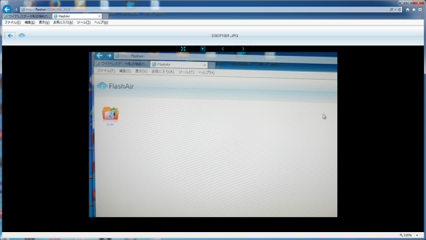 この画像は少々紛らわしいのですが、FlashAirの内容を参照したWebブラウザの表示を写真に収めた画像をブラウザ経由でFlashAirから参照した様子を、PrintScreenで保存したものです。この例ではWindows PCを利用していますが、他のデバイスでも同じURLを参照することで同じように閲覧することが出来るのです。