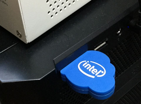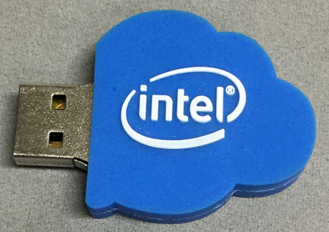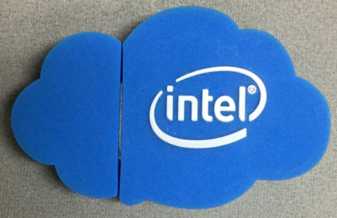 インテル色=ブルーでクラウドの形をして柔らかめのプラスティックでできています。