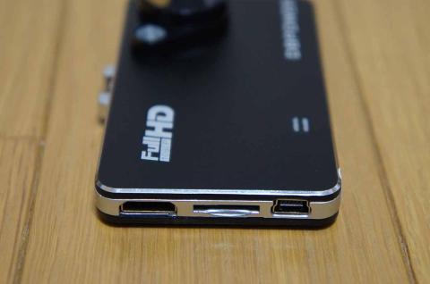 録画はMicroSDに記録されます。32GBまで搭載可能。電源はMiniUSB。映像出力は、このMiniUSBとHDMIに対応しています。