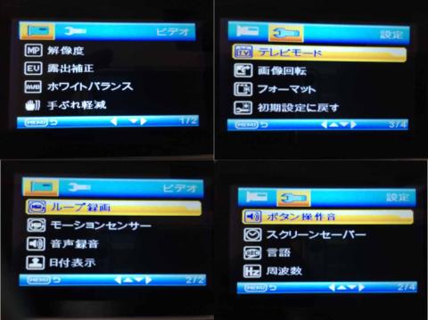 設定画面を1つの画像にまとめてみました。デフォルトでは英語に設定されていますが、多言語対応で日本語にも設定可能。正直、添付の取説がかなり貧弱なないような上、デフォルトが英語だったこともあり、お手上げ状態でした。しかし日本語に設定すれば、取説も必要ありませんでした。