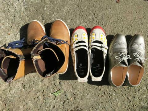 左から‥ワークブーツ(ロックなライブ用)、オニツカタイガーのスニーカー、Cole Haanの革靴