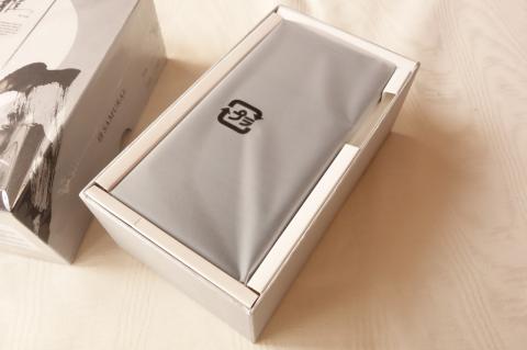 普通は透明なビニールで端末が包まれているのが普通な気がするので、色付きの袋に入っているのは珍しいかも。あと、端末とぴったりサイズの箱でないのも普通と違うかも。