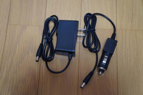 充電は汎用性のMicroUSB-USBケーブルではなく、専用端子のアダプタです。家庭用とシガーソケット用が付属しています。
