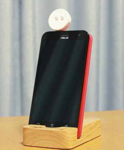 lolliflashはオーディオジャックに取り付けると言う事でした。 Zenfone2Laserに付けるとこんな感じになります。