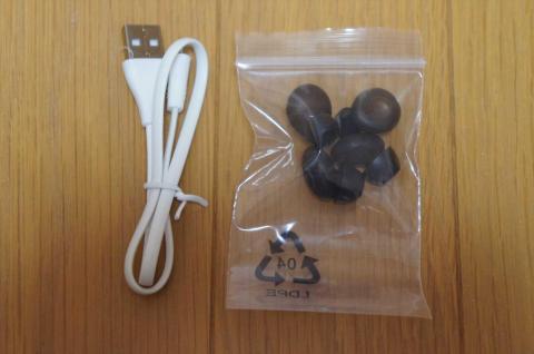 充電用のMicroUSB-USBケーブルと、交換用のイヤーパッドも付属しています。