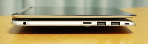 右サイドから行ってみましょうか。USBコネクタとMicroHDMI(タイプD)、microSDカードスロットが見えますね。