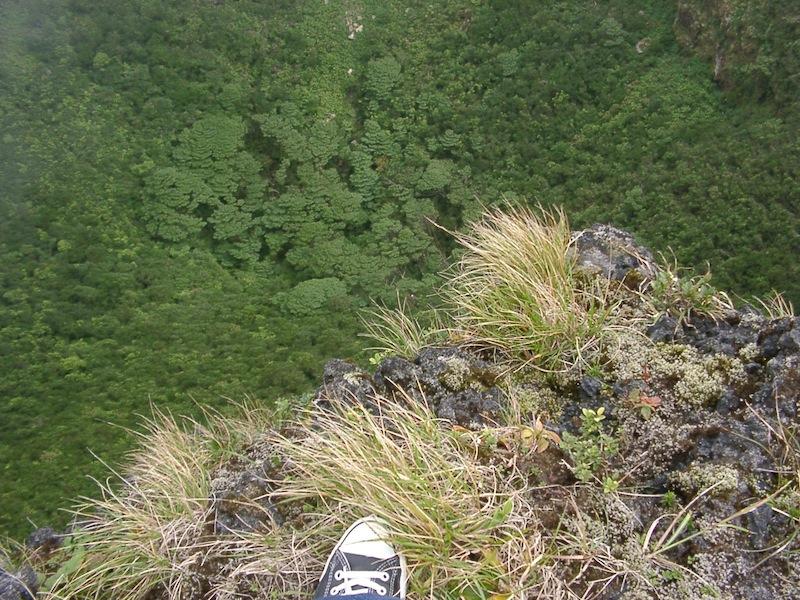 噴火口の渕を歩けるのですが、狭く柵もなく、ところどころ裂け目などもあって、なかなか危険なところでした。