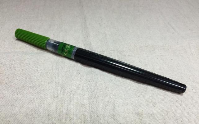 ぺんてるの筆ペンの太字です。用途はPOPを書くときに使ってます。