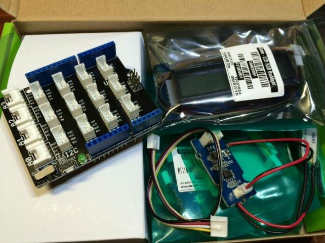 今回のキットは品名が「Grove starter kit Intel Edison Roadshow」、注文番号が110020005となっていてSeeedのサイトに見当たりませんので、Edisonのハッカソン用にセットされたものと思われます。特別!