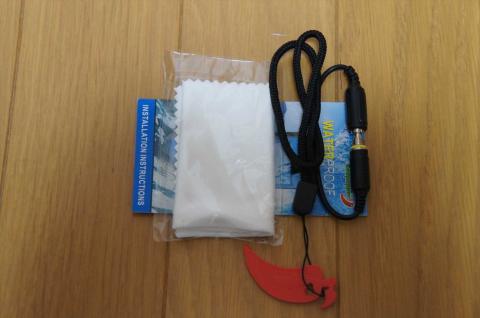 拭き取り用のクロス、ストラップ、ミニステレオ延長ケーブルが付属しています。