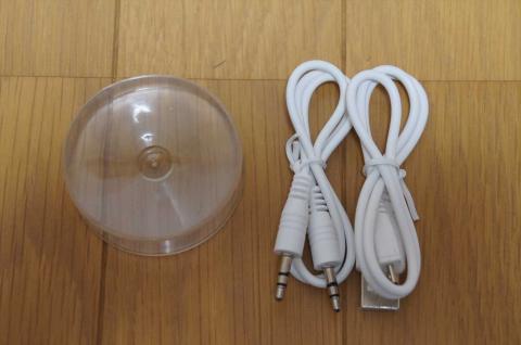 吸盤と、オーディオケーブル、MicroUSB-USBケーブルが付属してます。