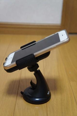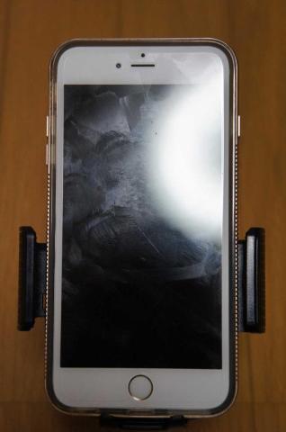 組み立てて、iPhone6 Plusを装着しました。マウントの裏には吸盤が付いているので、フロントガラスにも取り付け可能です。