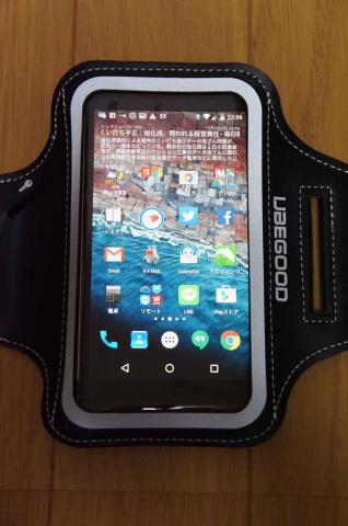Nexus5を入れてみました。Nexus5には、ケースを装着しており、対応スマートフォンを入れても、多少余裕を持たせている感じです。