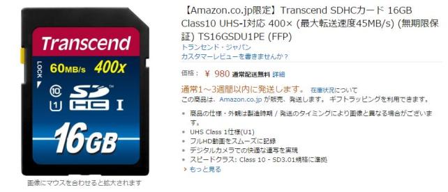一方、相変わらず低価格が進んでいるTranscendは、Amazon限定もでるまである。