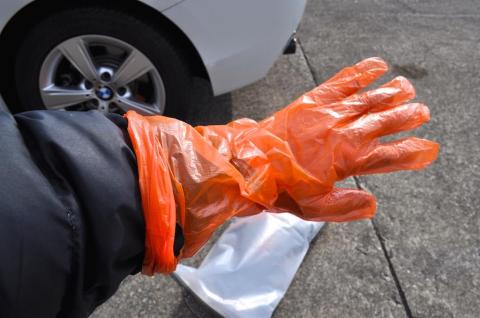 片方あたり800g程度。 薄手の黄色い長手袋が付属していますが、