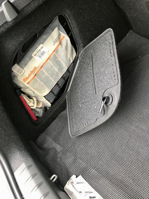 ラゲッジルームに、スペアタイヤはおろか車載ジャッキの備えすらありません。