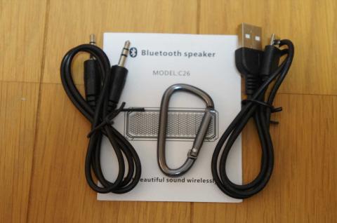 オーディオケーブル、MicroUSB-USBケーブル、そしてカラビナフックが付属しています。