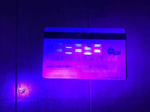 クレジットカードの裏面の氏名欄もこのように光ります。