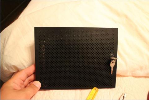 片面が粘着式になってるので、取り付けは簡単ですね。縦長さがMicro Serverの扉の高さとピッタリで横だけカットすればOKでした。