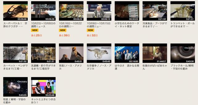 動画に関しては、共同通信さんが提供してる1週間のニュースまとめ動画(6分位)とディスカバリーチャンネルの動画(工場見学系と自然動物系)が数本、映画(はやぶさ・がばいばあちゃん)など16本と、電子書籍よりは数はありません。もともと合計20本まで~ということなので仕方ないかな。