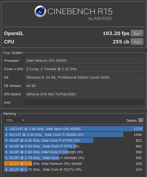 グラフィックについてはGTX560Tiは付いていますが、G4400は優れている結果でしょう。