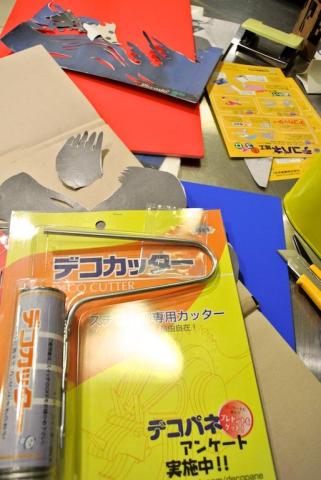 スチロール板にカッティングシートを貼り付けて、2nd.ver.を制作し愛用していたのですが、それも痛みが激しくなったのを機に、上記のスチロールカッターを探し、立体的な「旗」を作ろうと思い立ちました。