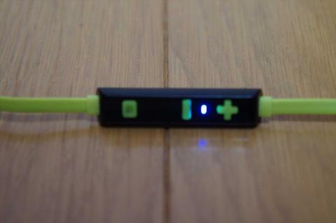 コードにコントローラーがあります。こちらの面は、電源ボタンとボリュームのコントロールがあります。動作時はLEDランプが点滅します。
