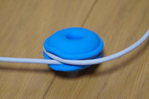 Lightningケーブルを巻いてみました。さすがにこのサイズですから、1mのLightningケーブル全てを巻くことはできませんが、これぐらいの太さのケーブルも巻けるということを理解してもらうために行いました。