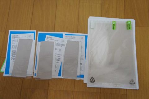 素材はPETになります。光沢タイプの3枚組。フィルムも3枚なら、付属品も3組付いています。